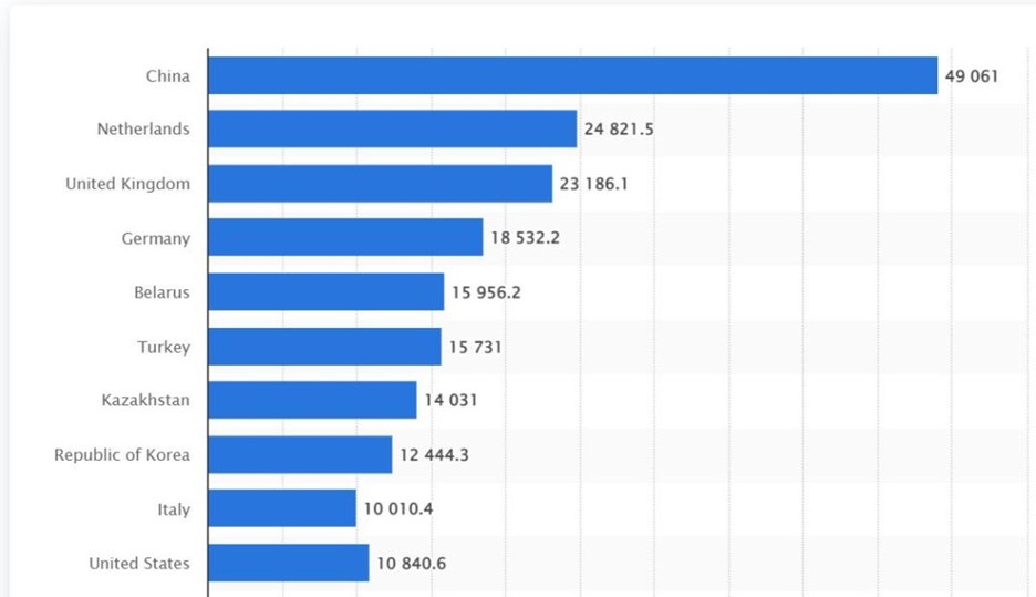 Los otros principales socios exportadores de Rusia incluyen a los Países Bajos, el Reino Unido, Alemania, Bielorrusia y, en el número 10, EE.UU.